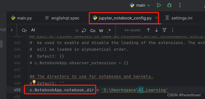 打开该文件找到#c.NotebookApp.notebook_dir = '这一行,将需要的路径写上去c.NotebookApp.notebook_dir =‘需要的盘符,去掉前面的“#”注释符号。