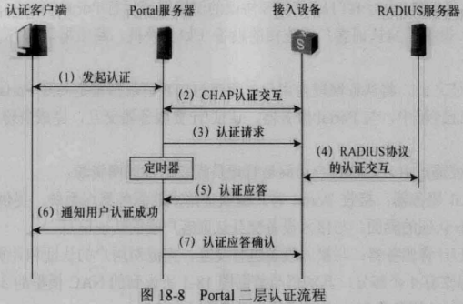 (3)Portal服务器:接收Portal客户端认证请求的服务器端系统,提供免费门户服务和基于Web认证的界面,与接入设备交互认证客户端的认证信息。