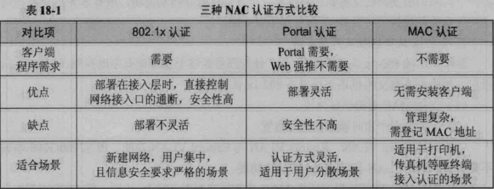 在计算机网络安全管理中,用户的网络接入控制(NAC)是必须充分考虑的一件大事,因为现在的网络安全隐患主要不是来自外网,而是内网。在用户接入控制方面,最直接、最有效的方法就是基于接入设备接口的各种用户认证方法,如802.1x认证、MAC认证和Portal认证。它们针对不同的用户需求和实际的网络环境提供的几种基于端口的实用接入控制方案。相对前面的AAA方案来说,此处基于接口的接入控制方法更直接,直接在接入处进行认证,但同时又不如AAA方案灵活,因为这三种认证方式仅是简单的允许或者拒绝接入认证,没有AAA方案中的为允许接入的用户授予相应的访问权限,更没有为不同用户进行计费的功能。