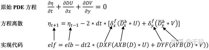 研究人员可以快速方便的将离散的PDE方程转换为相应的运算符表达形式。同时这些算子在底层可以实现自动并行,用户在上层实现的串行代码和并行代码一致,从而使得研究人员免于实现复杂的并行编程。下图是OpenArray中实现海洋海表高度求解的过程: