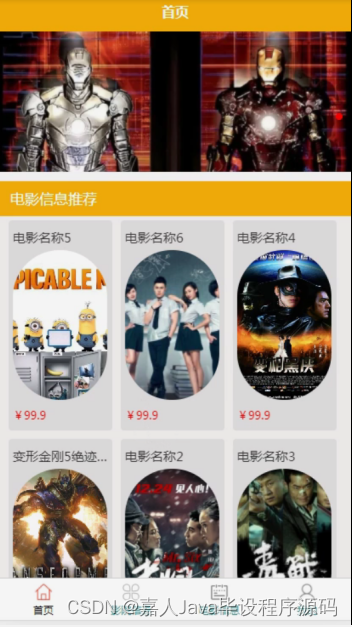 用户登陆系统后,可以对首页、影院信息、电影信息、我的等功能模块进行操作,如图5-3所示。