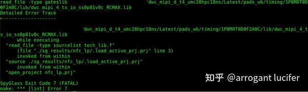 ③ 吃tech_lib.f阶段报Detailed Error Trace,有可能是tech_lib中有lib路径不对,但它说的很隐晦…,如:Error 1.3