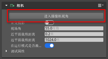 8、在相机组件中,点击进入摄像机视角后,你的视口将会呈现相机视角,你可以在视口中使用鼠标和键盘移动视角。