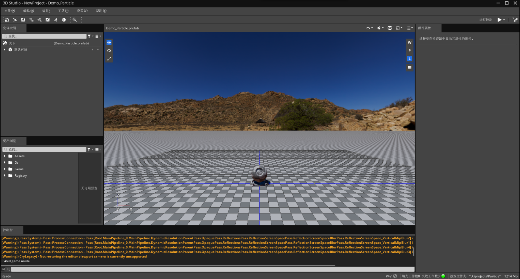1、在场景烟花效果之前,我们需要适当调整关卡中的环境,首先去除我们用不到的实体:在引擎首页“实体大纲”窗口中的默认环境找到着色球和地面网格实体,鼠标右键点击删除。