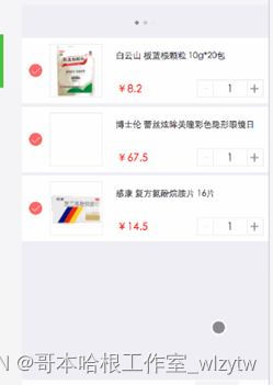 同样可以在首页底端的导航栏进入,在没有添加药品的情况下会显示为空,也可以在药品详情页添加,在的icon标志处进入。主要作用和一般购药APP的作用一致,查看药品,,显示购药总价格。对的功能分析如图3-4: