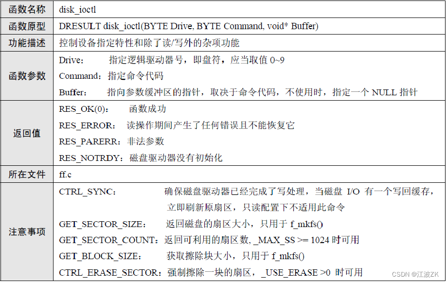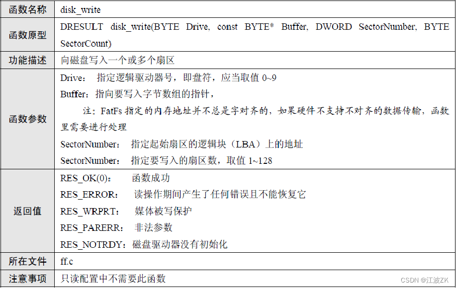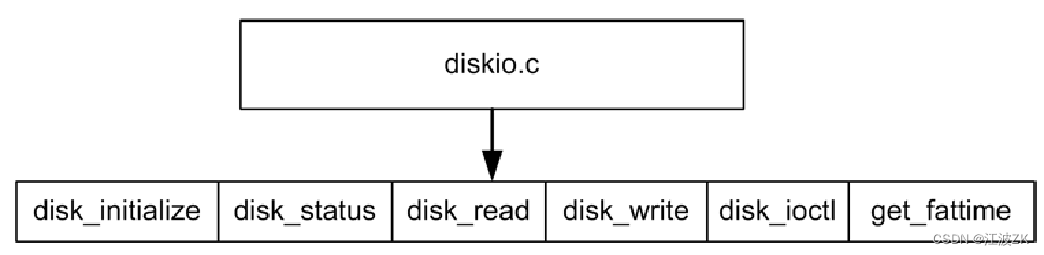 函数编写:打开diskio.c,进行底层驱动编写,一般需要编写6 个接口函数