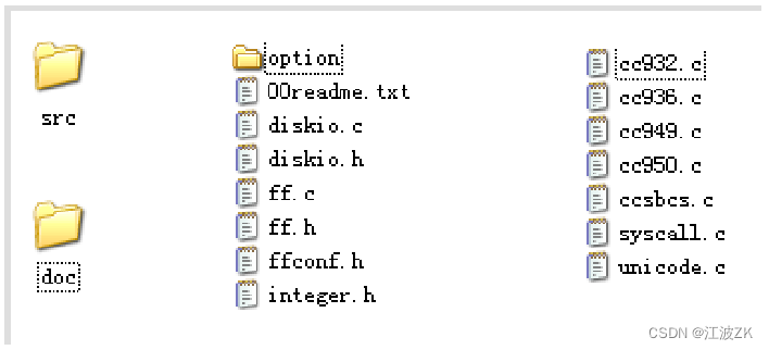 diskio.c和diskio.h是硬件层。 ff.c和ff.h是FatFs的文件系统层和文件系统的API层。