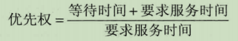 由于等待时间与服务时间之和就是系统对该作业的响应时间,故该优先级又相当于响应比Rp。据此,优先又可表示为:
