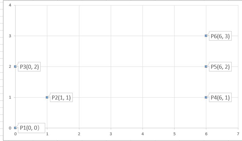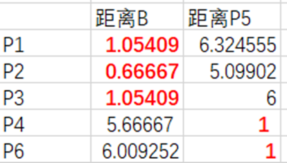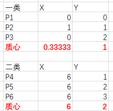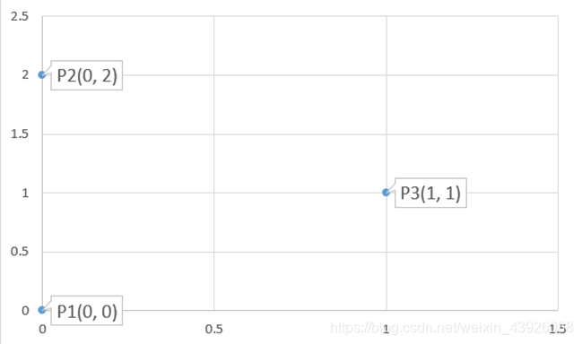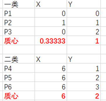 1、选取P1、P2作为初始质心(当然其他的也可以)