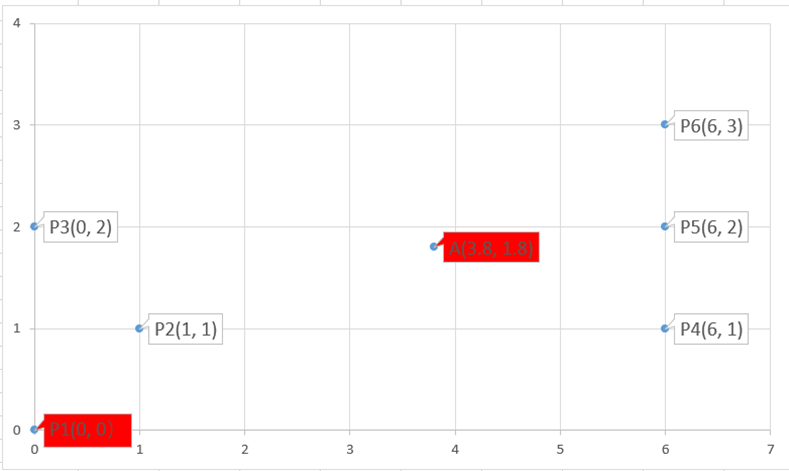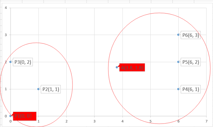 我们可以看到新的质心中P1还是之前存在的点,而点A是新生成的质心,并不是之前存在的点!!