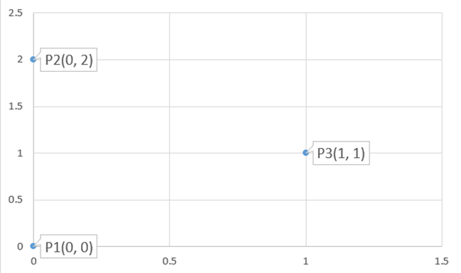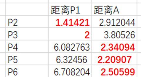 d(P3-P1)= 1. d(P3-P2)= 1. 平均值(ave3)= 1.