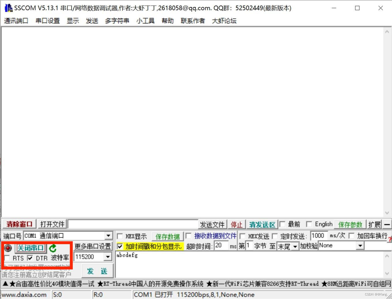 所以有时候串口收发异常,尝试修改一下RTS和DTR的选中。