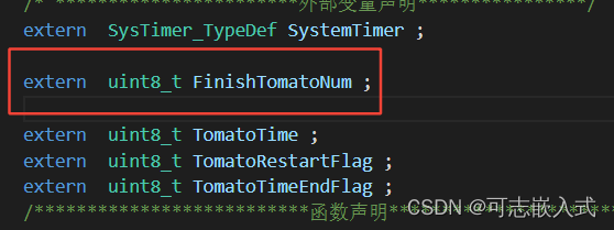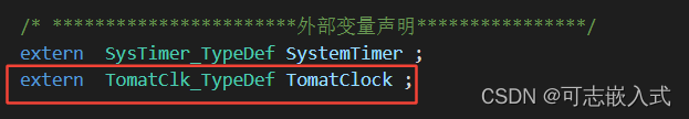 最后,在bsp_TimBase.h文件extern引用此结构体变量,这样其他文件中的函数可以通过include bsp_TimBase.h文件,进而引用此结构体全局变量。