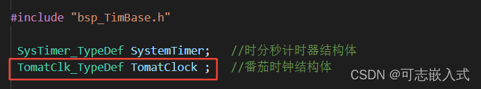 其次,在bsp_TimBase.c文件中定义一个Tomato类型的结构体变量