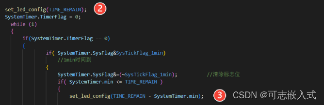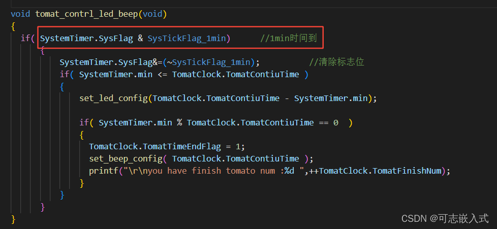其次,在main.c中,tomat_contrl_led_beep函数,检测不到分钟标志位,便停止更新led和beep蜂鸣器。