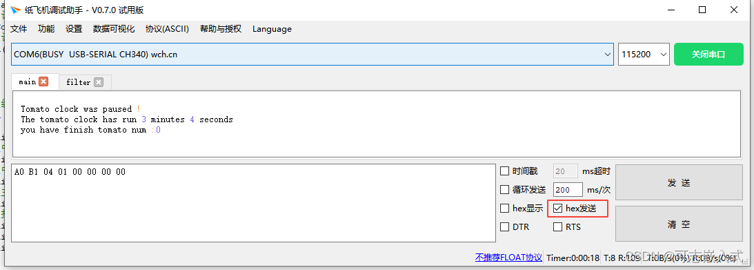 2.3.4 通过串口指令,暂停、开始番茄时钟