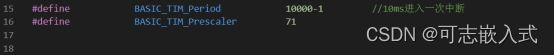 根据这一节中2.2的内容,我们知道,设置10ms中断间隔,我们可以把Period设置为10000-1; Prescaler保持不变。