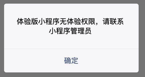 原因:因为用的是体验版,所登的微信账号无体验权限。 解决方案:管理员给该账户体验权限,用该小程序有体验权限的账号测试