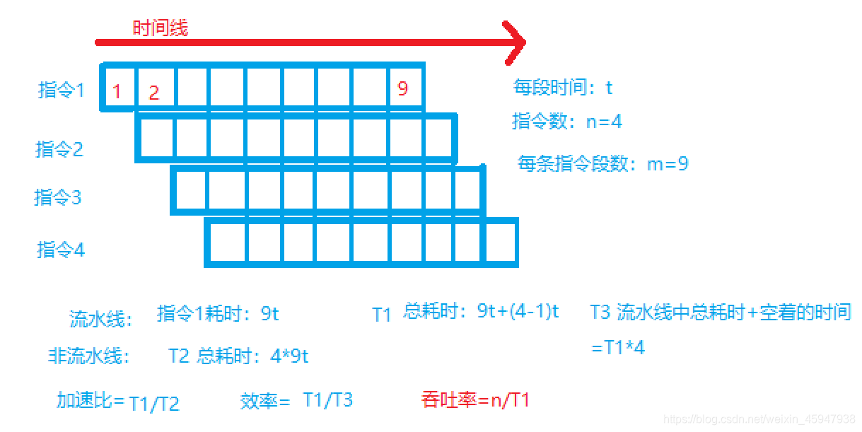 指m段流水线的速度与等功能的非流水线的速度之比,即流水线总时间除以非流水线总时间