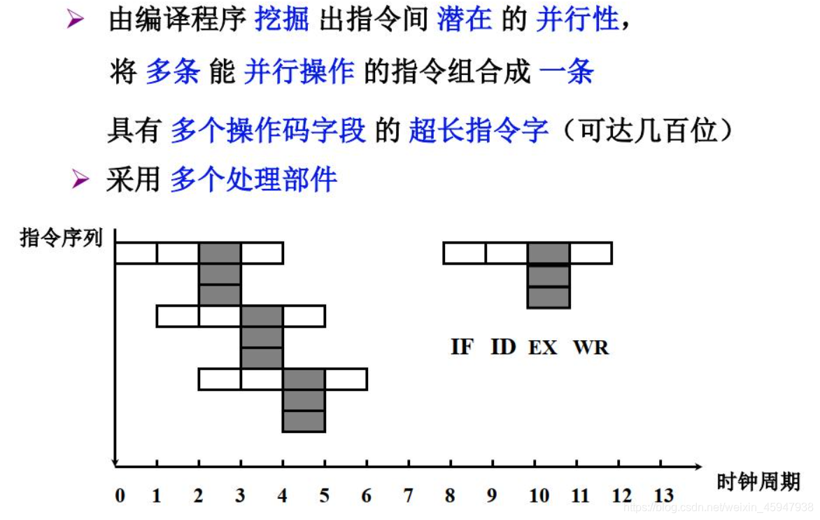 把多条能并行操作的指令组合成一条具有多个操作码字段的超长指令,相当于同时执行多条指令