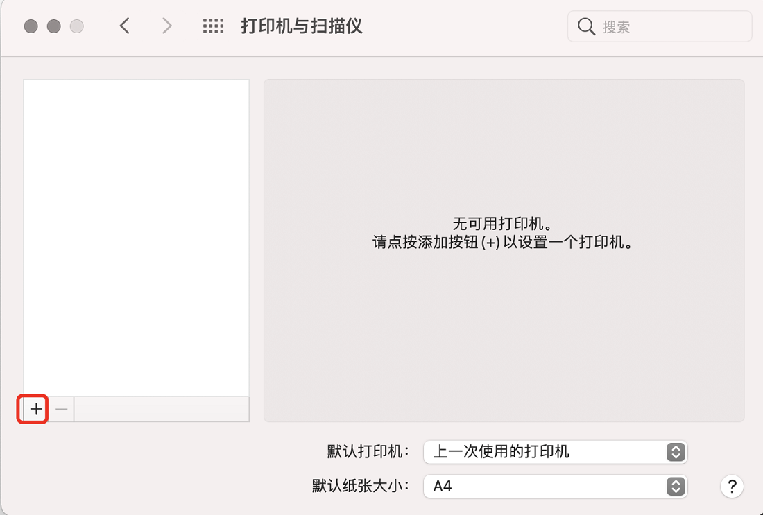 点击左侧的+号,添加打印机