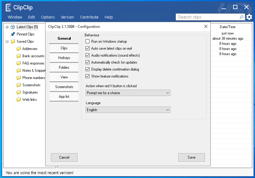 - Autosave latest clips on exit 退出时自动保存最新剪辑