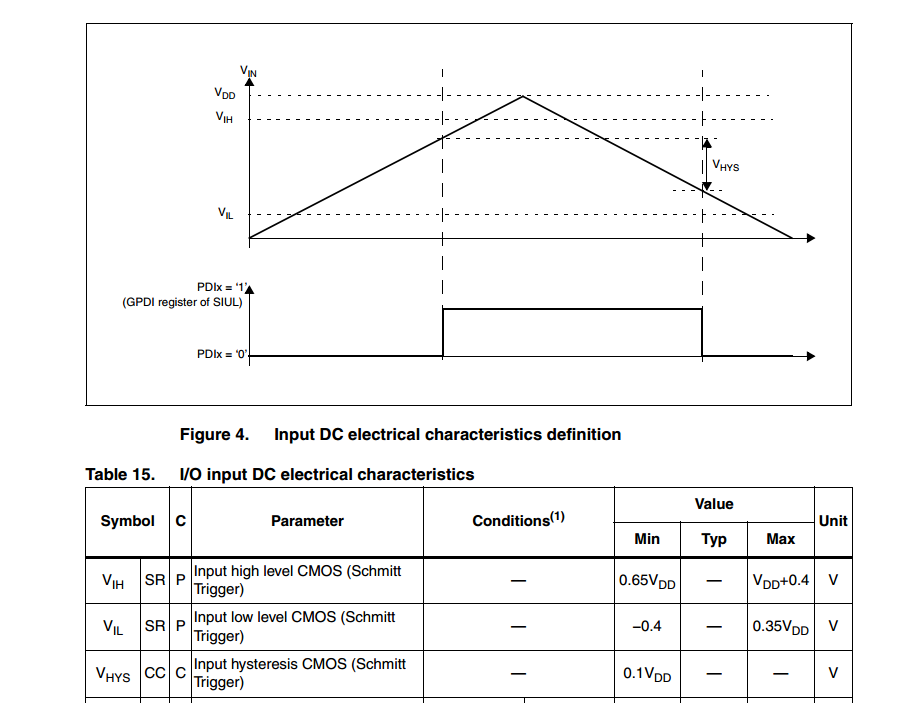 另外引出Vhys,滞后电压。如图2所示,滞后电压能够在高低电平判断上有一个滞后作用,通俗的说也就是未达到但接近VIH的部分也判定为高,高于但接近VIL的部分也判定为低,避免采集的信号接近VIH或者VIL来回跳动。