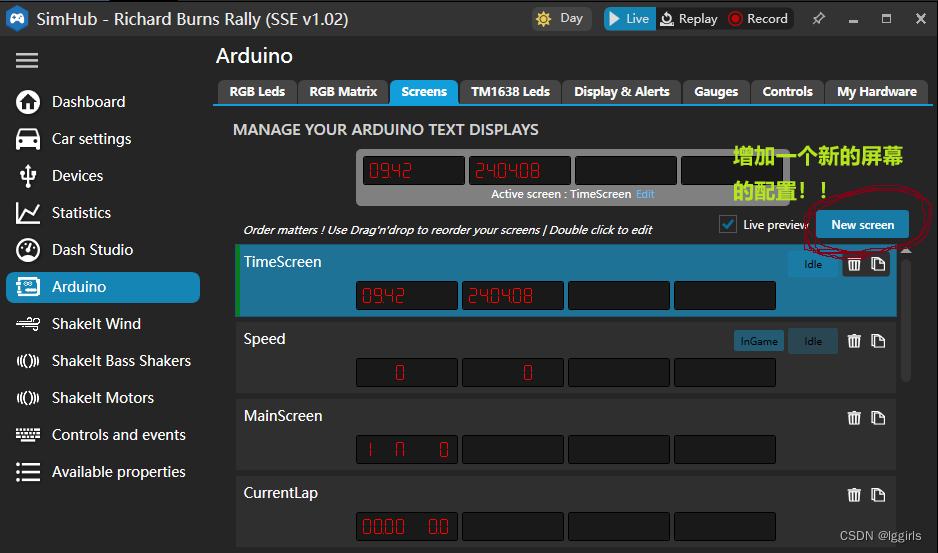 5.1 下图中的 TM1638 Leds 是另外一种数码管显示模块,因为我没有采用,所以也无从配置。可以看官方教程:Arduino Tm1638 Display Wiring · SHWotever/SimHub Wiki · GitHub