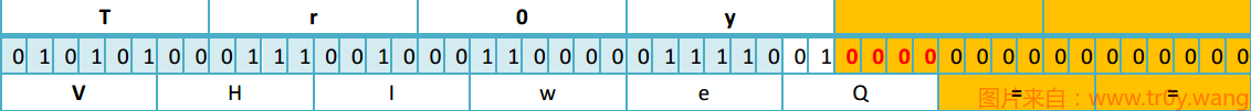- 把 Base64 字符串去掉等号, 转为二进制数(VHIweQ== -> VHIweQ -> 000).
