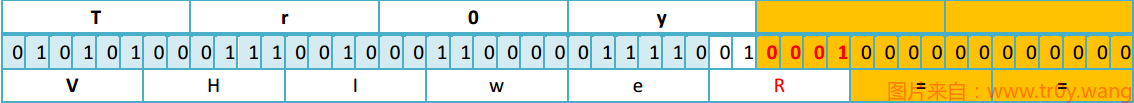- 从左到右, 8 个位一组, 多余位的扔掉, 转为对应的 ASCII 码(0 0 00 0 0000 -> 扔掉最后 4 位 -> 0 0 00 0 -> Tr0y)