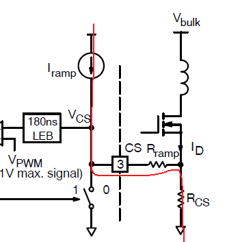 上图中的Iramp是一个电流源,它的电流波形为:占空比为80%,幅值为100uA的三角波,且他的周期与斩波周期是同步的。