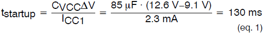 在发生过载或FB引脚悬空时,要进入错误模式,此时有130ms的判定时间。如果要使用1271错误模式的功能,则需要保证在130ms内,依靠VCC上的电容能让1271正常工作。假定正常工作时VCC的电压为12.6V,则需要让1271在130ms内VCC的电压高于9.1V。65K频率的1271功耗为2.3mA左右,因此: