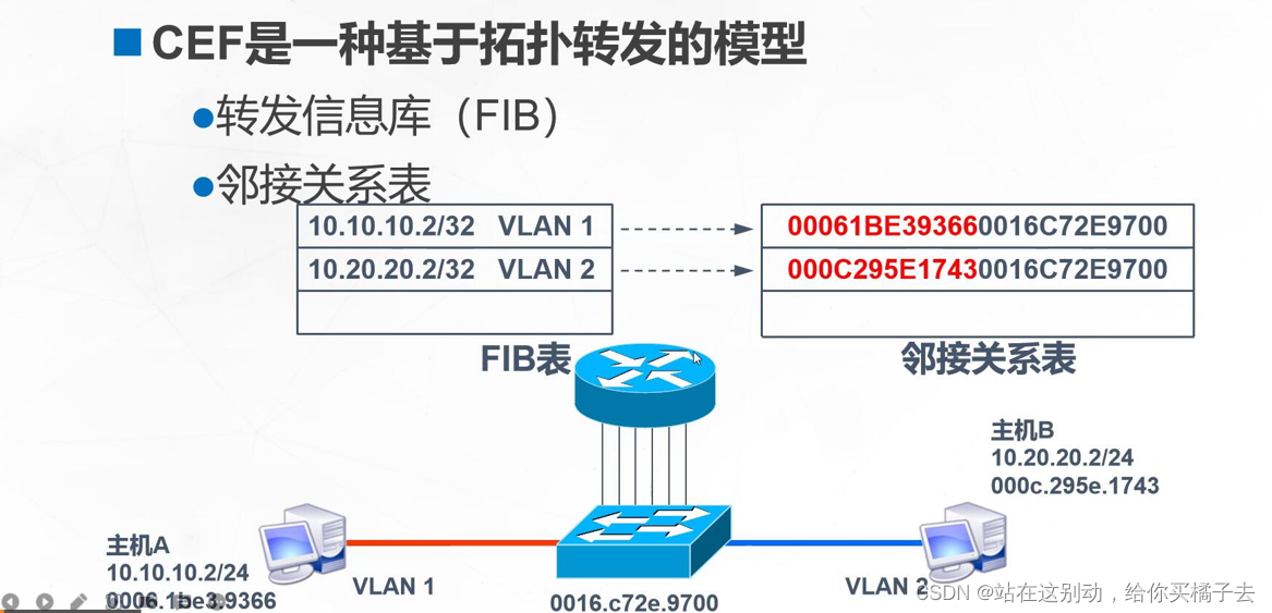 注意:转发信息库 与路由表对应 寻址 邻接关系表 指明mac地址