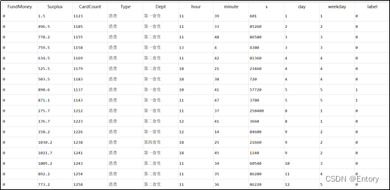 - 对每个卡号分别计算前后刷卡时间差(单位:秒),在这个过程一定要对时间进行排序,计算的时间差才是前后刷卡时间差。如果时间差大于10分钟,那么记为标签为1;