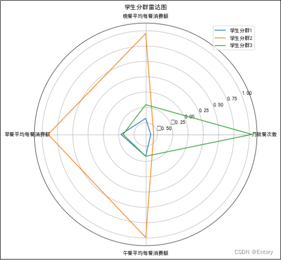 - 对聚类结果进行分群分析,绘制雷达图,如图 23所示。
