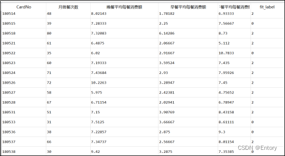 - 最后直接统计每个卡号的长度即为就餐频次,消费金额为一次就餐金额。