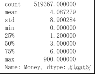 - 对data2消费表的Money字段进行统计分析,如均值、方差等,如图 2所示。