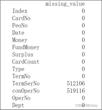 通过对学生消费记录进行缺失值检查,发现存在缺失值较大的两个列,分别是TermSerNo列和conOperNo列,缺失值分别达到和,对于缺失值较大的列,在实际的数据分析中无意义,予以删除处理。