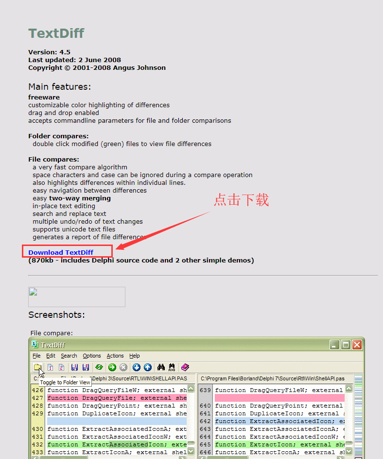 官方下载地址:http://www.angusj.com/delphi/textdiff.html