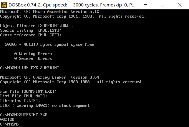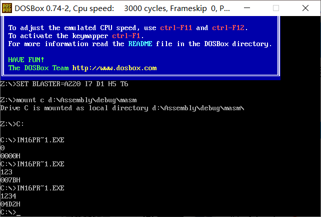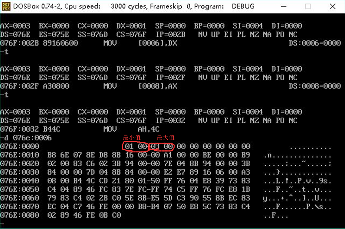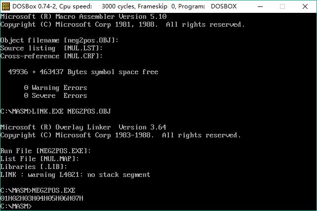 使用dosbox环境masm5.0编译器,debug方式可以看我这篇文章https://blog.csdn.net/_/article/details/