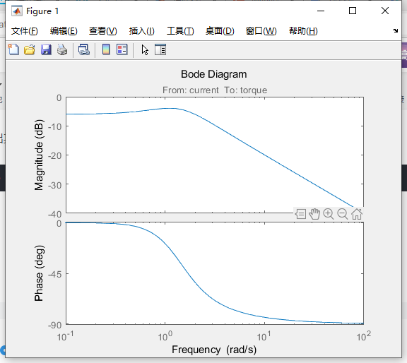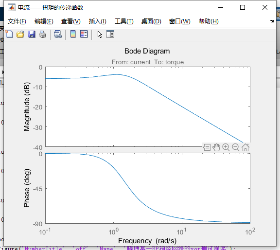 >> figure('NumberTitle', 'off', 'Name', '电流——扭矩的传递函数'); %先建立一个空白的Figure >> bode(a)