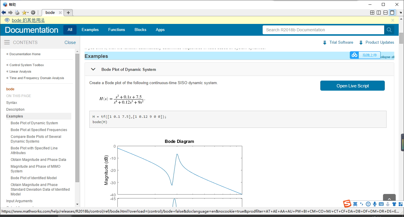 选择bode的参考页(蓝色字体已被标记出),查看帮助文档。