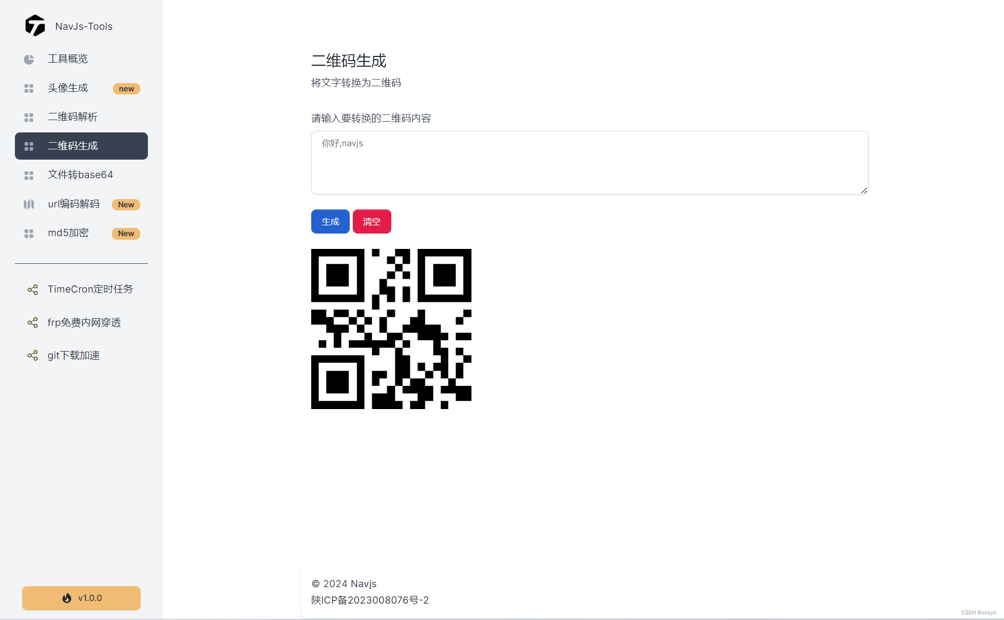 navjs官方团队出品的 免费的在线工具,帮助程序开发人员提高开发效率的一些小工具,包含了头像生成,二维码生成,文件转base64,url编码解码,md5加密等功能
