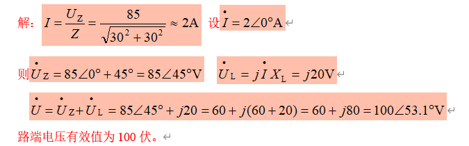 4、右上图所示电路中,已知Z=(30+j30)Ω,jXL=j10Ω,又知UZ =85V,求路端电压有效值U=?