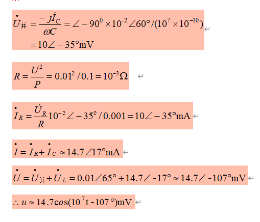 7、电路如图所示。已知C=100pF,L=100μH,mA,电路消耗的功率P=100mW,试求电阻R和电压u(t)。