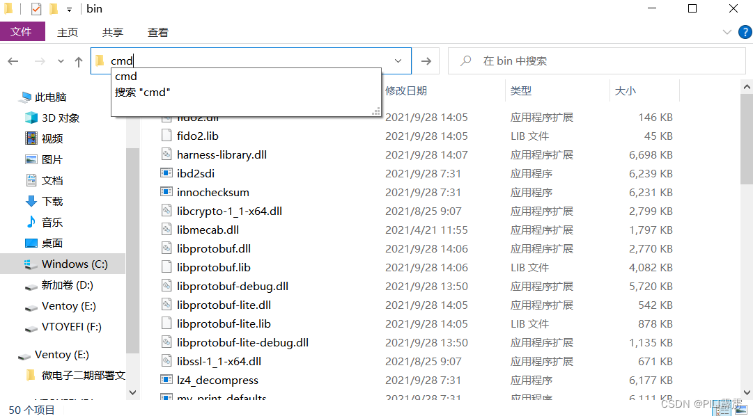 打开刚刚找到的安装位置文件夹,在地址栏输入cmd,回车——即打开该文件夹对应的cmd(在bin文件夹下打开)