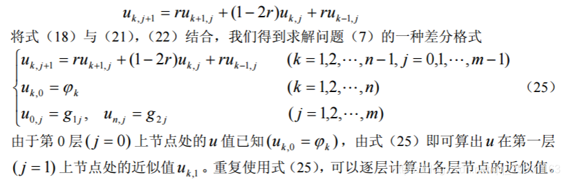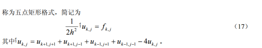 由式(13)所给出的差分格式称为五点菱形格式,实际计算时经常取 h = τ ,此时 五点菱形格式可化为