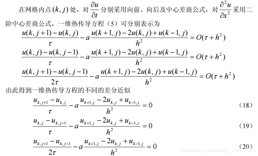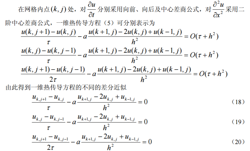 下面我们以热传导方程的初边值问题(7)为例给出几种常用的差分格式。