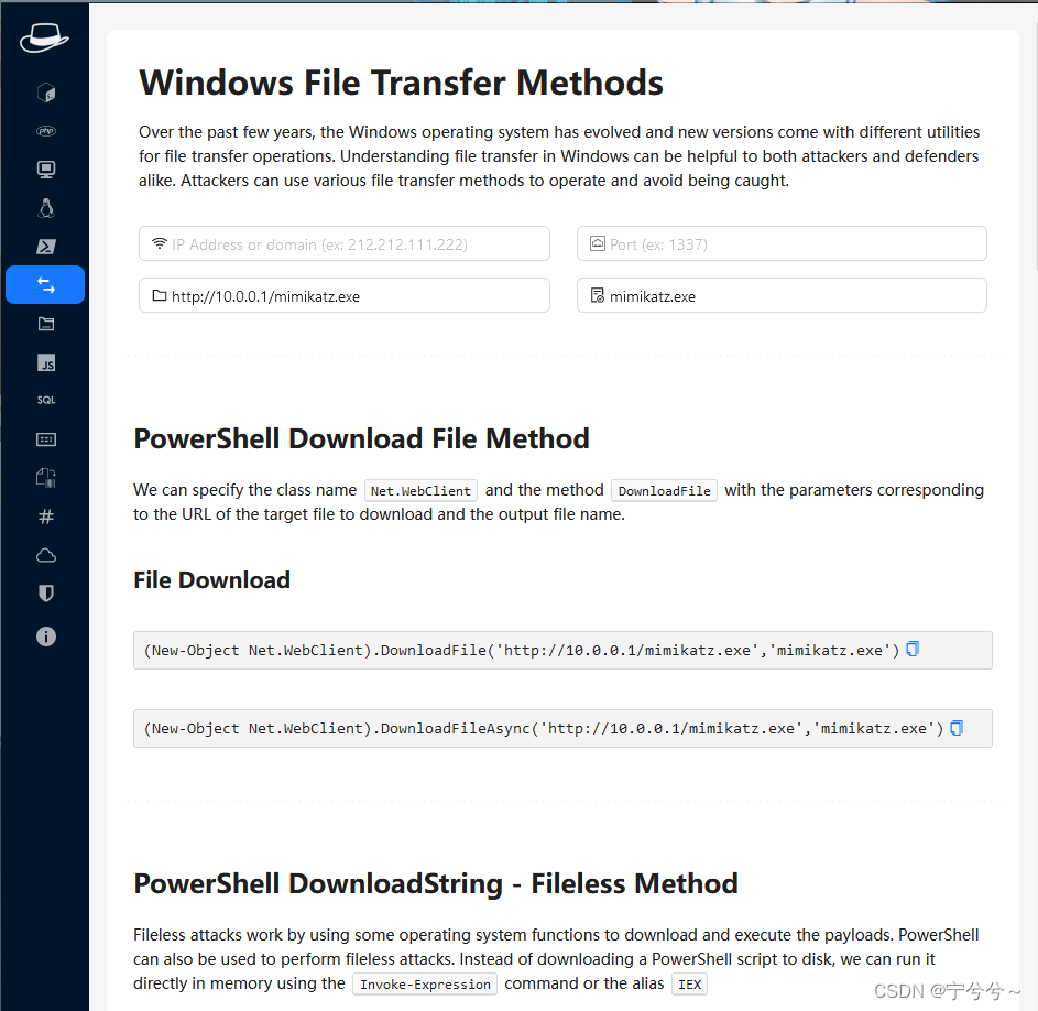 这款工具,更加准确的来说是渗透备忘录。可以很方便的查找我们所需的相关命令。无需去查阅其他资料。当然我们也可以参考里面的命令进行相关命令的学习。