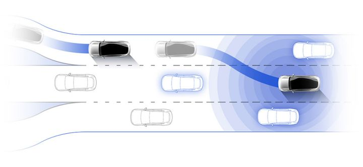 因为特斯拉具备换道功能。驾驶员在确保安全的情况下,拨动转向灯杆,车辆即可依据该信号实现换道。也就是说,特斯拉的换道操作并不是全自动的,而是把这一块对环境感知的需求交给了人。特斯拉收到变道信号后会由车判断是否可安全变道后才会执行。比如前后车距离太近、实线都不会变道的。